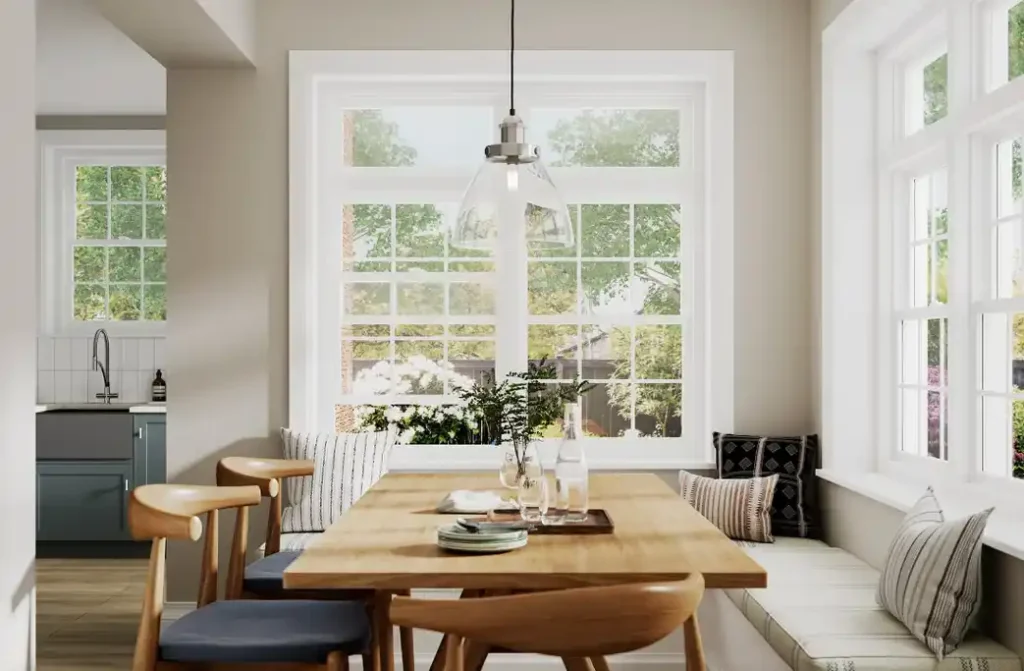 casement windows in a dining room
